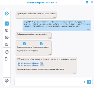 Sherpa Autopilot генерирует итоговый документ, отчёт или выполненную операцию в нужном формате.